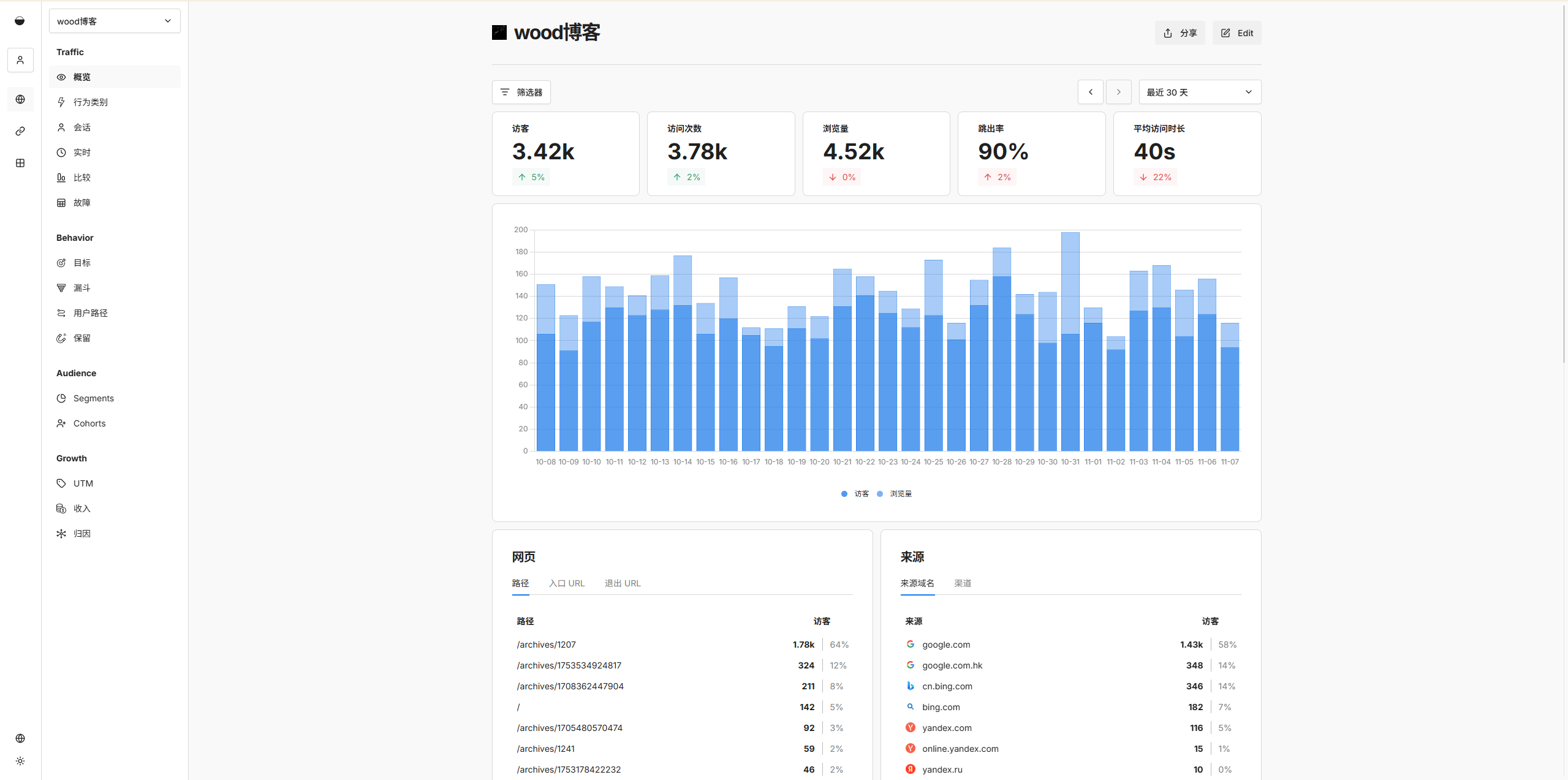 链接和像素都像网站一样,拥有自己的统计页面。