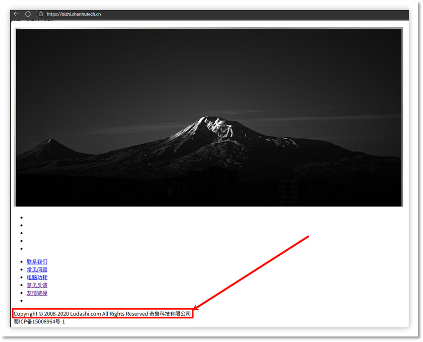 而当访问网站"bizhi.shanhutech.cn"时,会进入一个小鸟壁纸软件的下载页面,网站下方的版权文字显示属于"奇鲁科技有限公司"和"ludashi.com"。