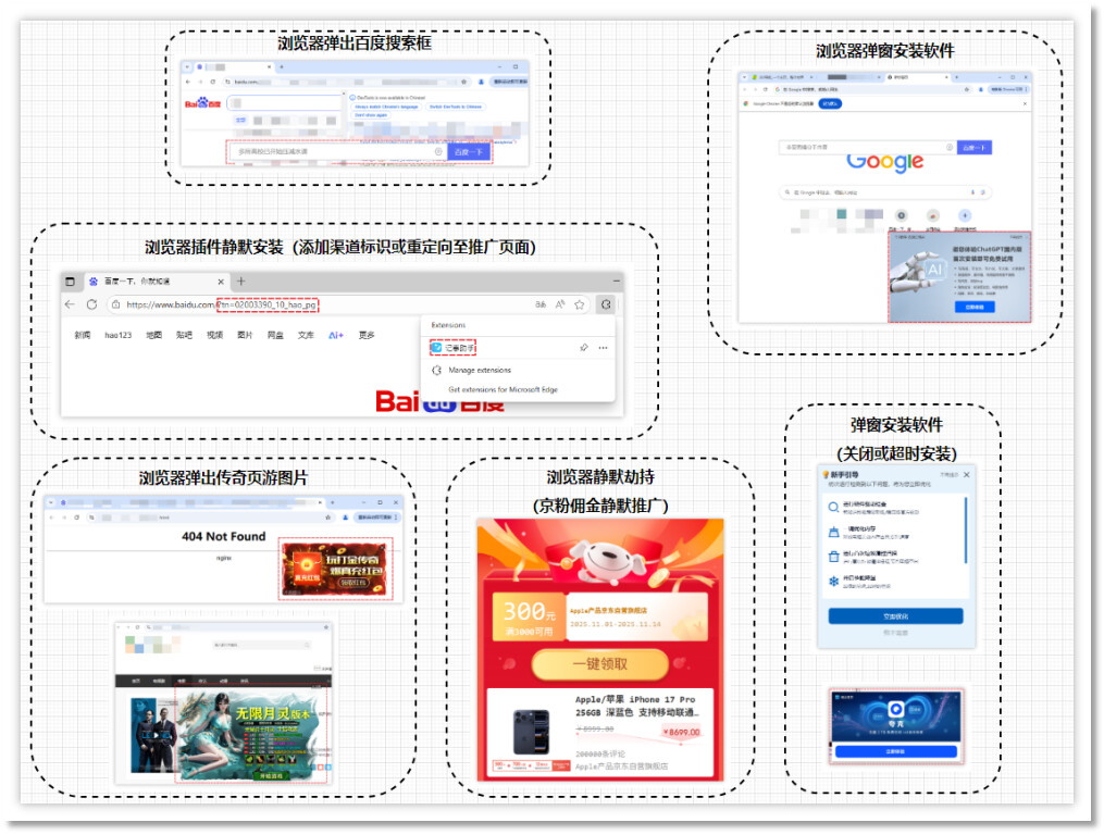 当前,网络已成为工作、学习、消费、社交等各类日常活动的重要支撑,部分厂商依托这一普遍的上网常态加大推广力度,因此用户需提高警惕,防范各类隐蔽的流量劫持及恶意推广行为。