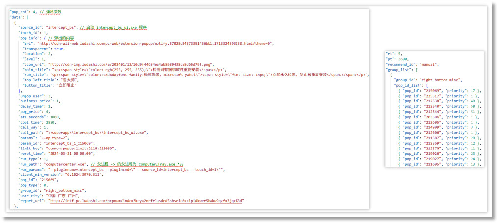 推广自身小工具: 接收整体云控配置中 universal_popup_rec_slow 与 popmgr_slow,分别是弹窗软件数据和弹窗规则,其含有 intercept_bs 类似的工具,本身用于推广自身小工具,通常存放于 SuperApp 文件夹中。