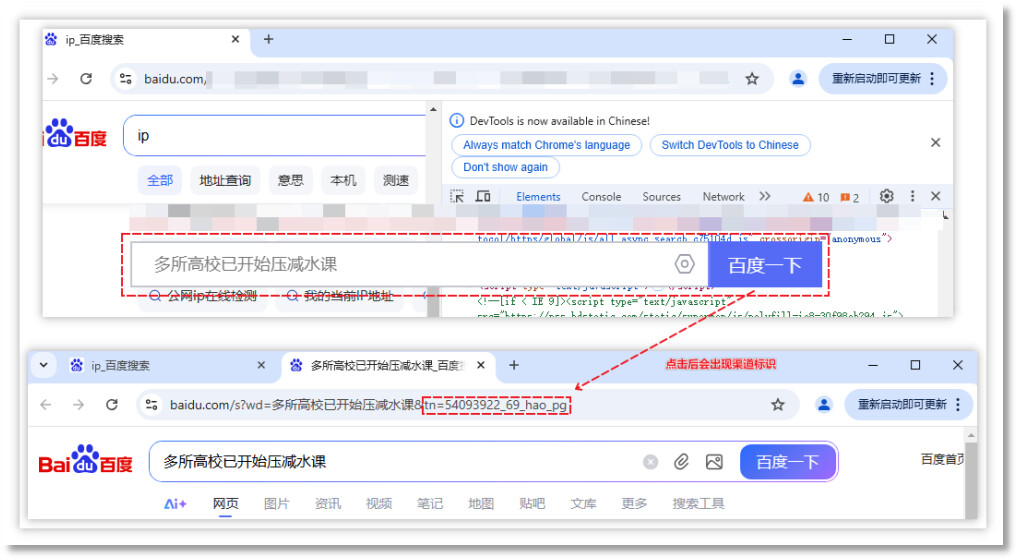 点击《百度一下》按钮后搜索时会添加 tn 渠道标识。