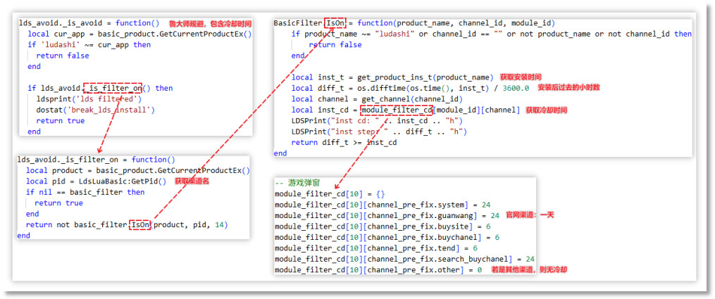 分析过程中发现,推广模块在获取云控配置时也会进行规避,根据用户地区和下载渠道筛选推广目标,避免向高风险用户投放从而规避可能的风险。