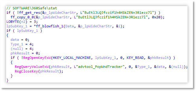 本次分析中,所有软件的推广模块基本采用相同的加密方式:使用 BlowFish 算法对原始数据加密,再通过 Base64 算法编码后进行数据收发。解密操作主要发生在以下场景: