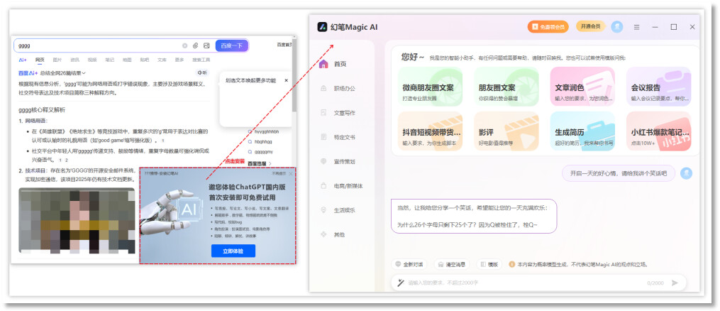 浏览器弹窗安装: 在测试过程中,浏览器弹出《推荐-安装幻笔 AI》窗口,经交互验证,点击该弹窗将触发安装流程。