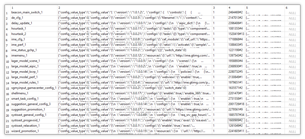 搜狗输入法真实下发的云控配置对应的数据库图